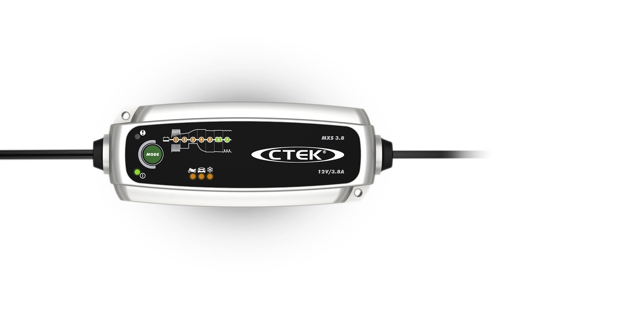 The MXS 3.8 microprocessor controlled 7 step battery charger and maintainer is suitable for batteries from 1.2Ah-85Ah. Features include battery diagnosis to establish whether your battery can receive and retain a charge, a patented desulphation program and a ‘Snowflake’ program for charging on cold days. It also includes selectable programs for charging smaller and normal batteries. The MXS 3.8 uses CTEK’s patented float/pulse system, which is the most efficient maintenance mode when a battery is connected for long periods. The MXS 3.8 is simple to use and you can follow the whole charging process on the clear, easy to read display.
